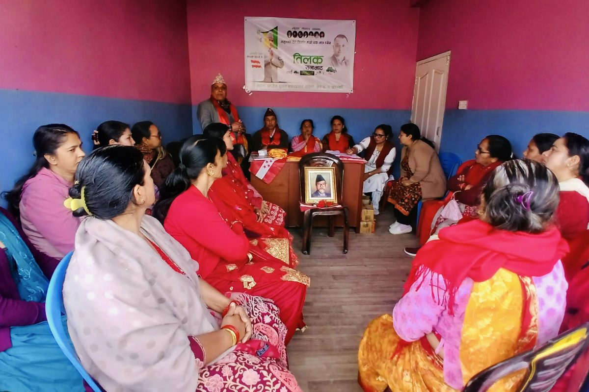 महिला नेतृ सुधा थापाको अध्यक्षतामा सम्पन्न भेलामा दुर्गा अधिकारीले स्वागत मन्तव्य राखेकी थिइन् भने कार्यक्रम सञ्चालन शक्तिश्री तिवारीले गरेकी थिइन्।