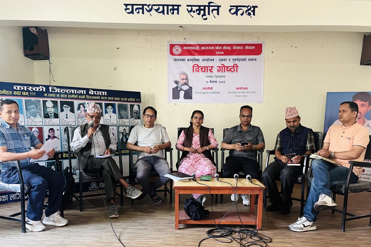 मार्क्सवादी अध्ययन श्रोत केन्द्र ,पोखराको आयोजनामा २०८३ साल बैशाख १३ गते पोखरामा ‘नेपाली कम्युनिस्ट आन्दोलनको एकता र पुनर्गठन’ बिषयमा बिशेष विचार गोष्ठी सम्पन्न भयो ।
